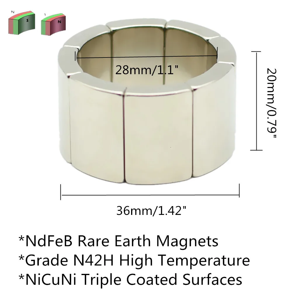 Magnétisation: moitié avec N sur le visage extérieur, moitié avec S sur le visage extérieur